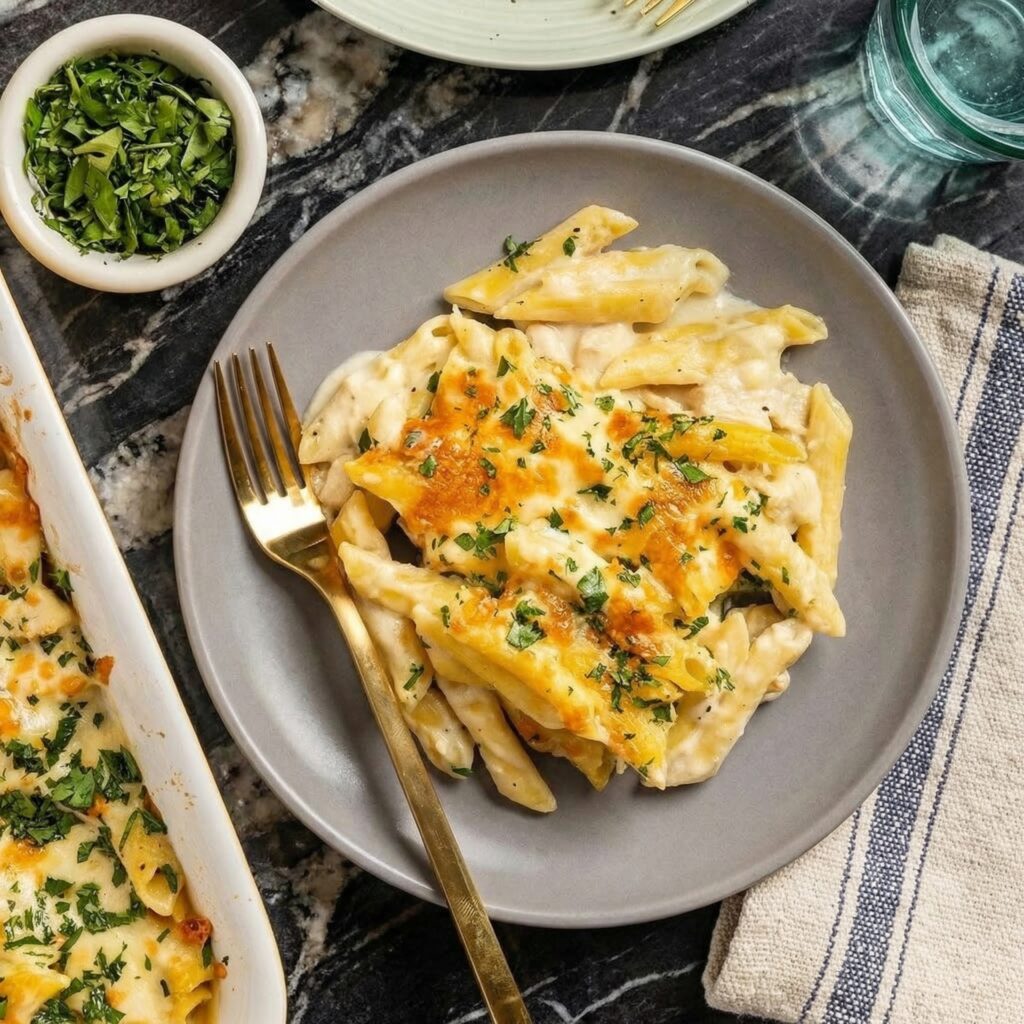 This Chicken Alfredo Bake is creamy, cheesy, and absolutely comforting.