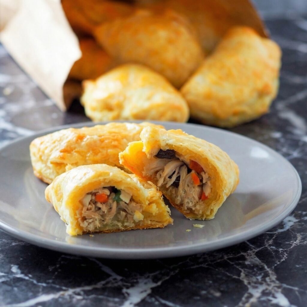 Chicken empanadas are the ultimate hand-held meal—golden, flaky pastry pockets filled with savory shredded chicken, bell peppers, onions, and a blend of warm spices. They’re perfect for parties, game day, or a quick dinner.