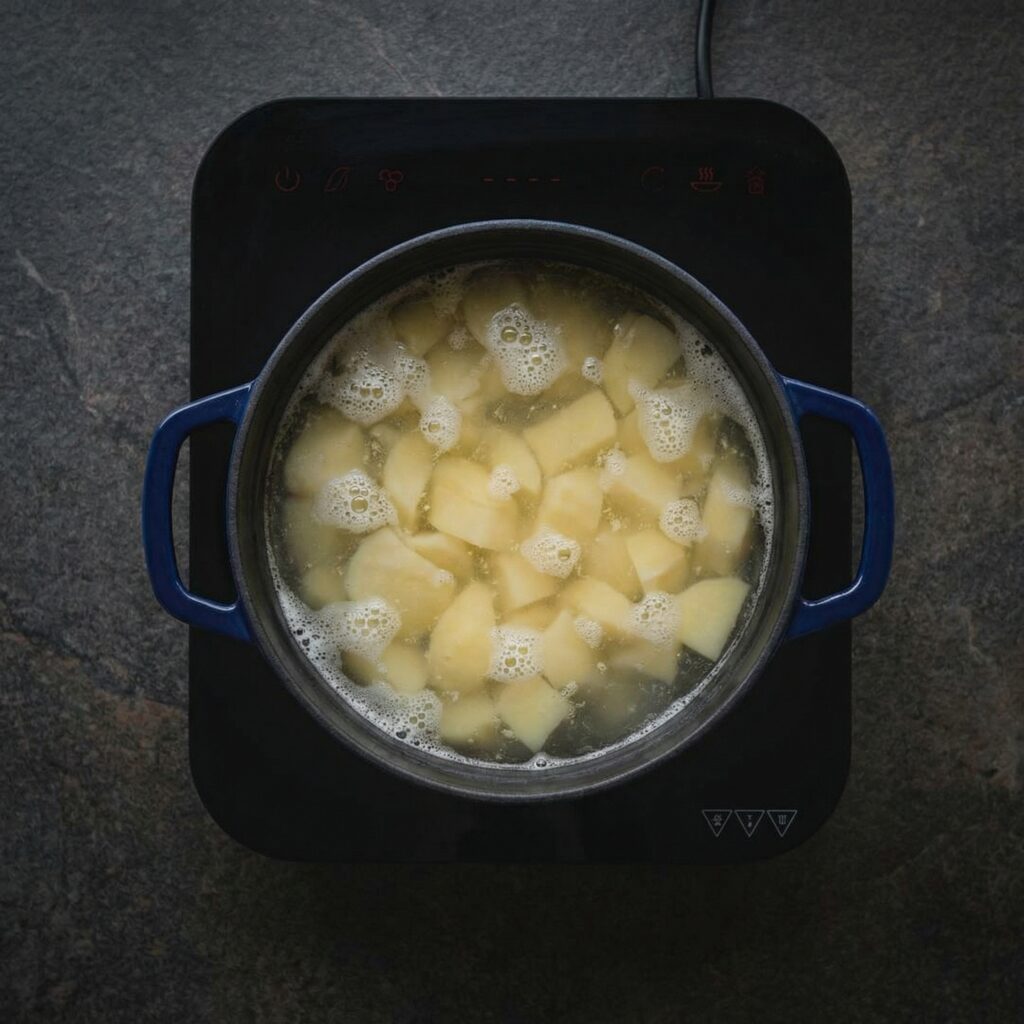 Place cubed potatoes in a large pot and cover with cold water. Add a pinch of salt. Bring to a boil, then reduce heat and simmer for 15–20 minutes, or until potatoes are fork-tender.