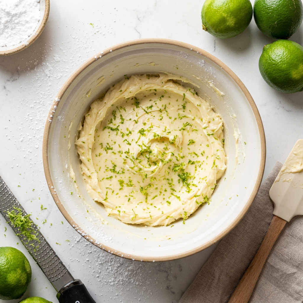 In a large bowl using an electric mixer, beat the softened butter, sifted powdered sugar, and lime zest on medium speed for 1-2 minutes until just combined, creamy, and fragrant. Do not overbeat; it should not be fluffy.