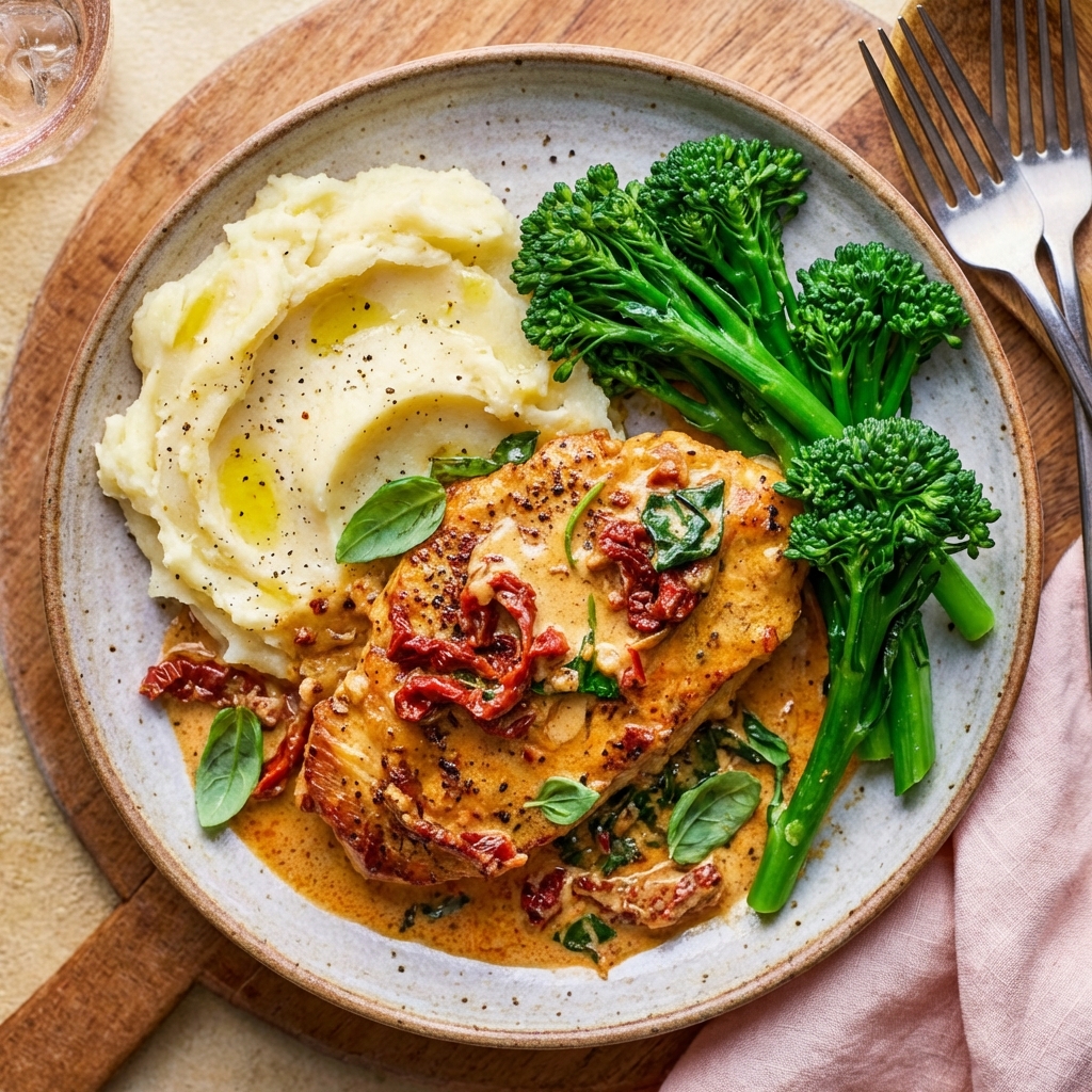 Return the chicken breasts to the skillet, spooning the creamy sauce over the top. Simmer uncovered for 8–10 minutes, or until the chicken reaches an internal temperature of 165°F (74°C).