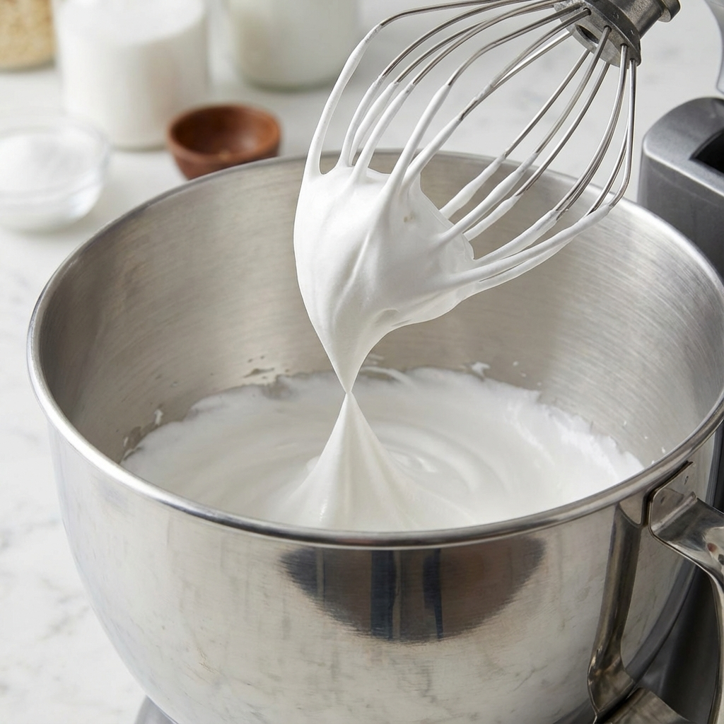 - Stiff Peak Test: The meringue is ready when you can hold the bowl upside down over your head without it moving.