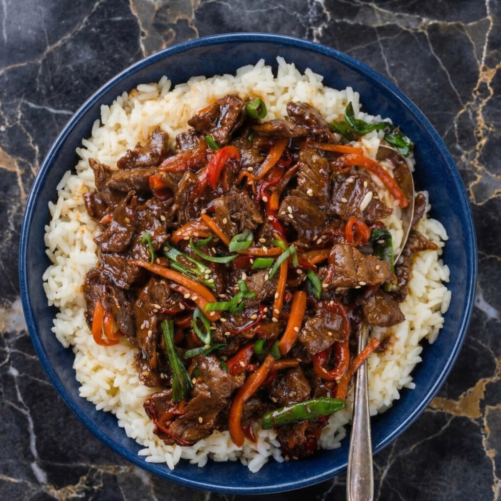 Mongolian beef is a takeout classic for good reason—tender, thinly sliced beef with a sweet and savory ginger-soy sauce, crispy edges, and a glossy, caramelized finish. It’s quick, satisfying, and surprisingly easy to make at home. This version is faster than delivery and tastes infinitely better.