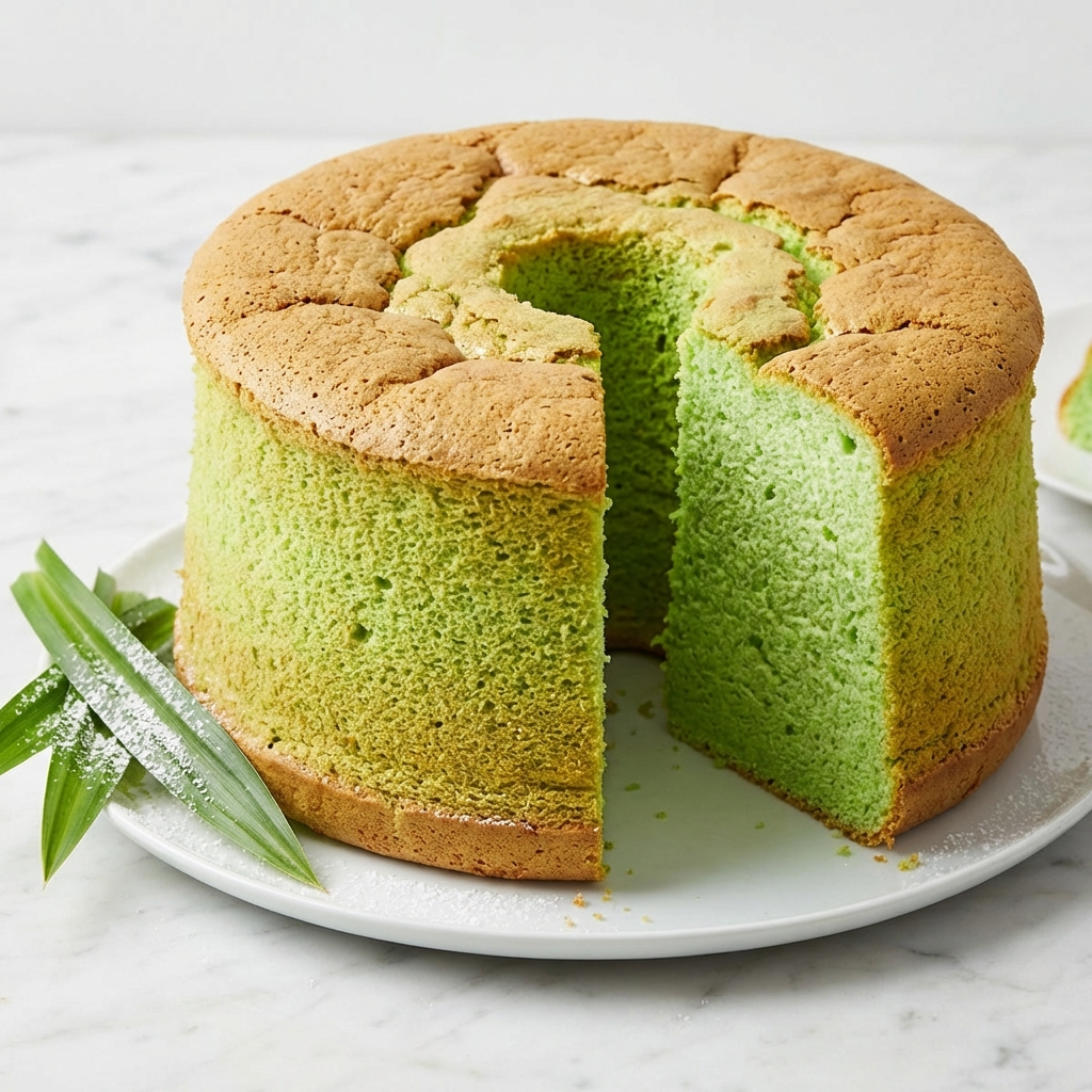 Experience the exquisite flavor and texture of a classic Pandan Chiffon Cake. This Southeast Asian masterpiece gets its mesmerizing green color and distinctive, fragrant aroma from fresh pandan juice, and its incredible lightness from a carefully aerated egg-white foam.