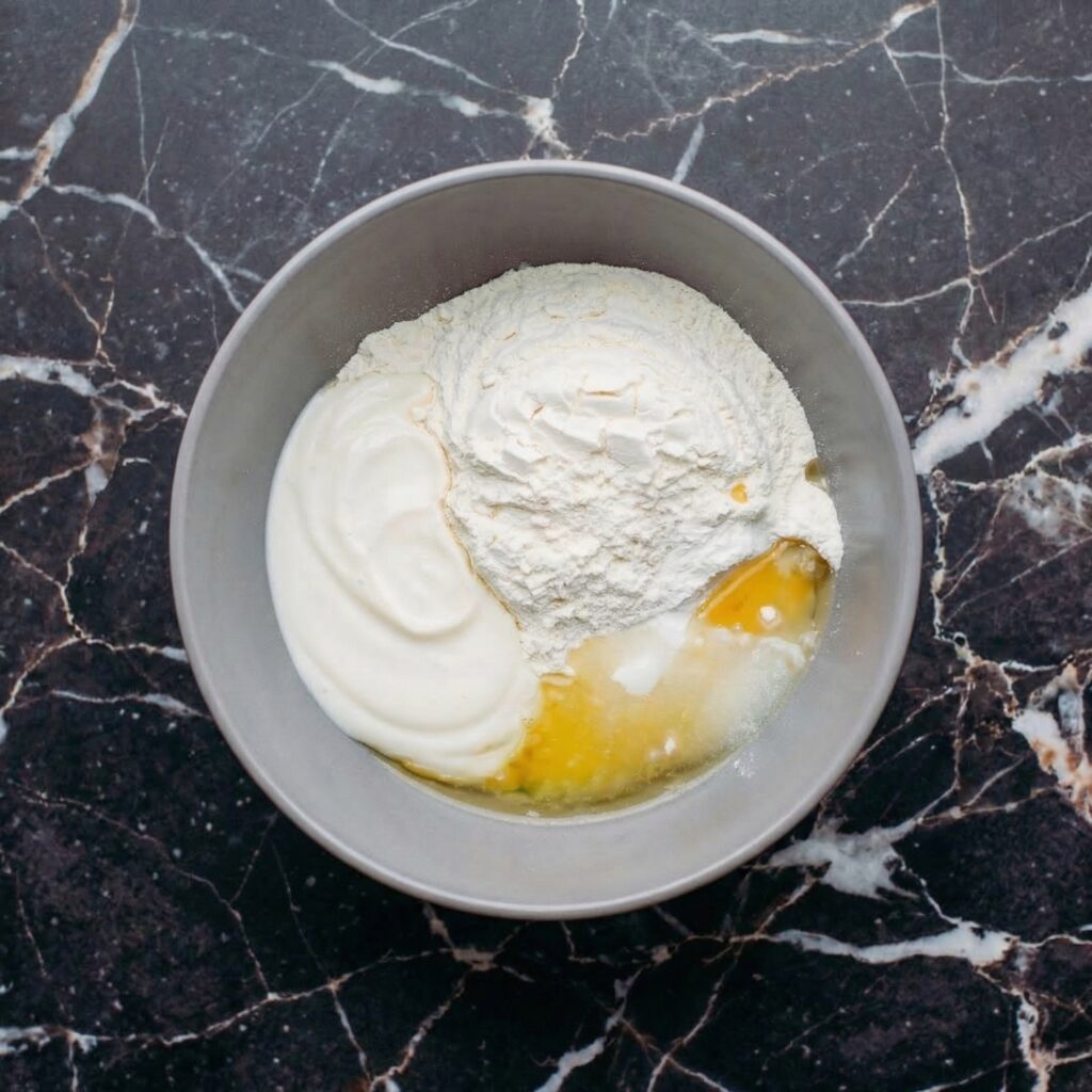 In a large bowl or stand mixer fitted with the dough hook, combine the flour, yeast, sugar, and salt. Add the yogurt, olive oil, and most of the warm water. Mix until a shaggy dough forms, then knead for 5-7 minutes until smooth, soft, and elastic. Add more water if needed—the dough should be soft and slightly tacky but not sticky.