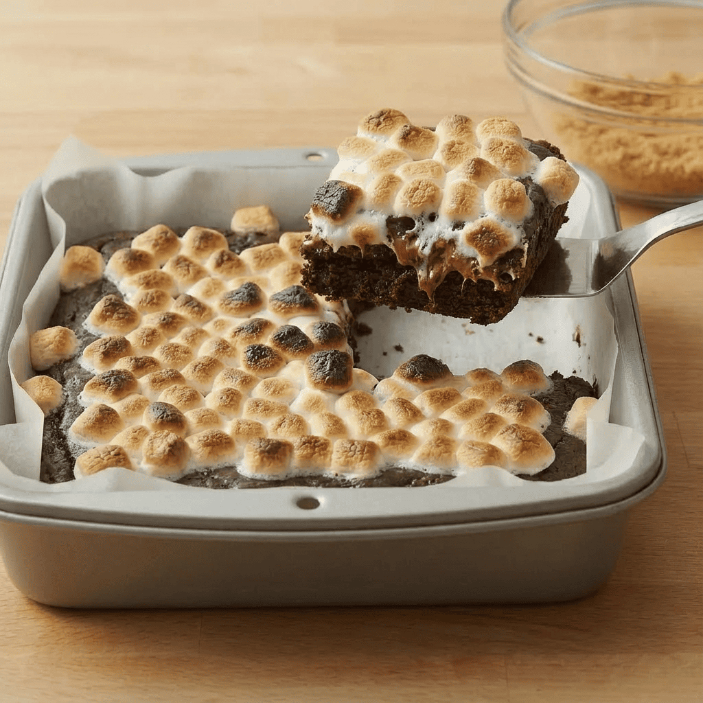 The final marshmallow toasting is a quick but crucial step. Placing the baked brownies under a high-heat broiler for just 1-2 minutes causes the Malliard reaction on the marshmallow surface, creating that signature campfire-toasted flavor and a crisp, golden shell, while the inside becomes irresistibly soft and sticky.