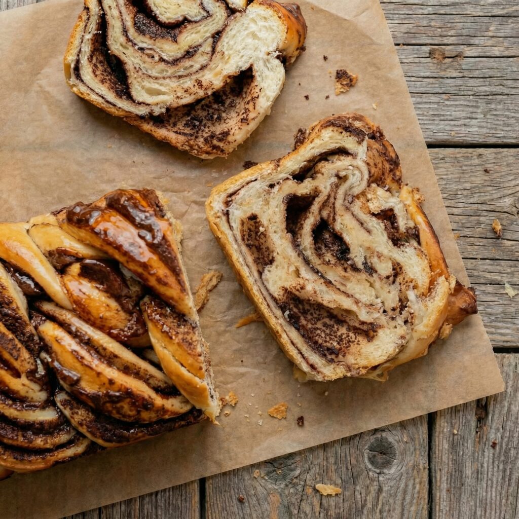 The dough is similar to brioche—soft, slightly sweet, and enriched with eggs and butter. When baked, the swirls create a marbled interior that’s as beautiful as it is delicious.