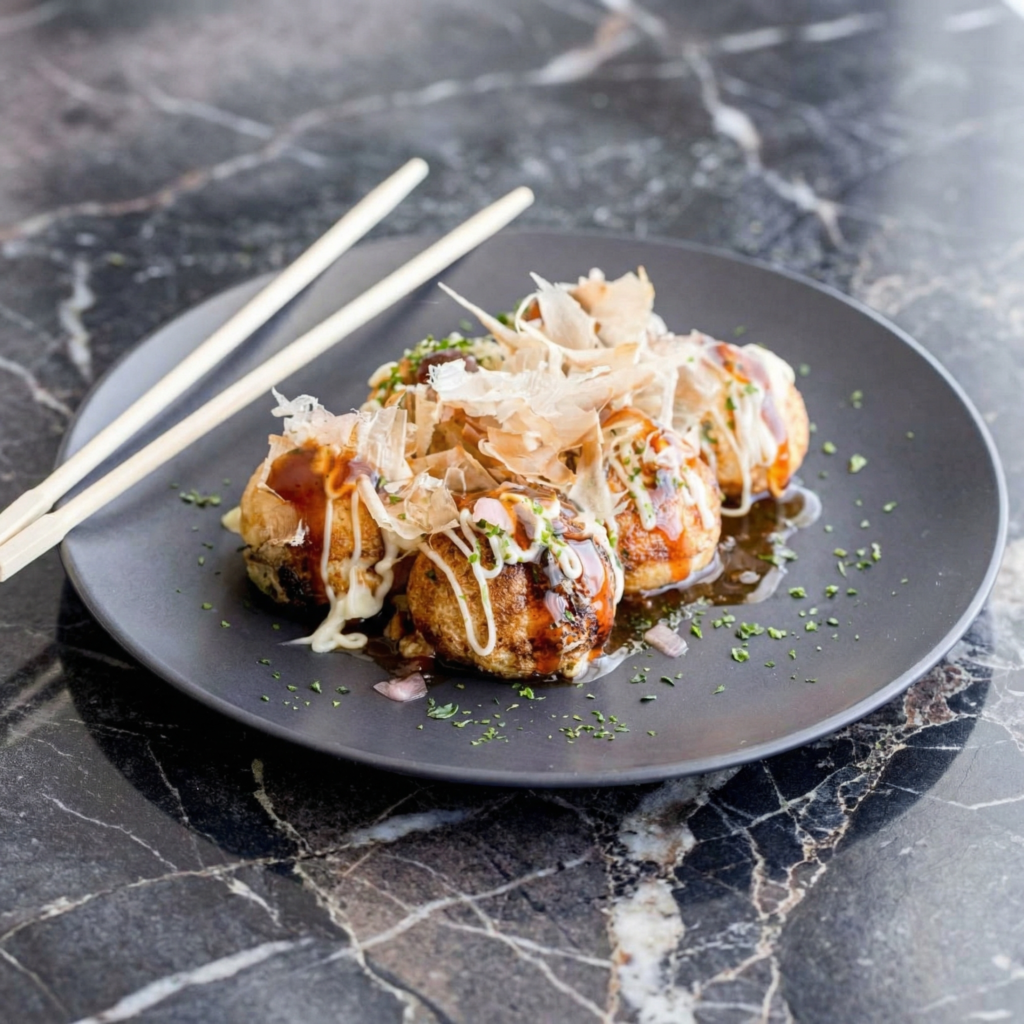 The result is a snack that’s crispy on the outside and soft, almost molten, within. Topped with savory takoyaki sauce, creamy Japanese mayonnaise, and dancing bonito flakes, they’re absolutely irresistible.