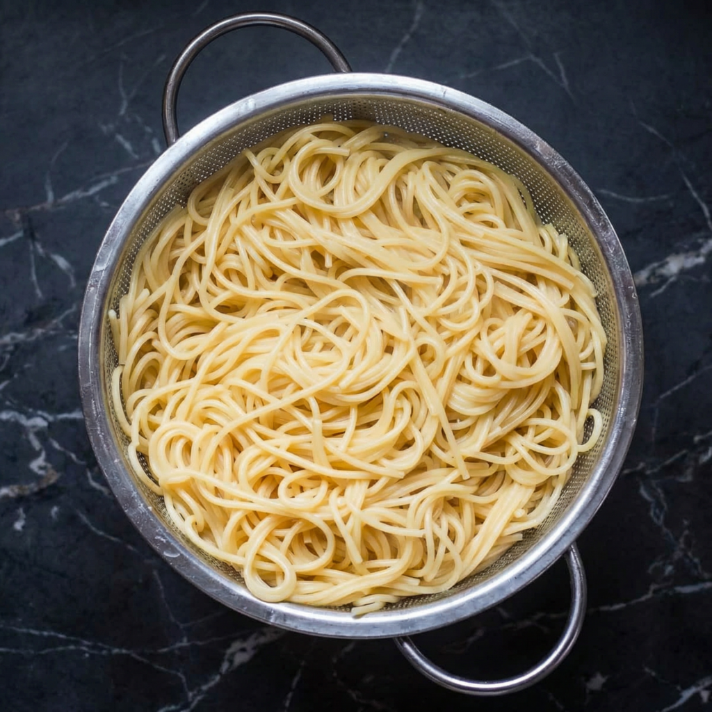 Reserve about ½ cup of pasta water before draining. This starchy water can help loosen the sauce if needed.