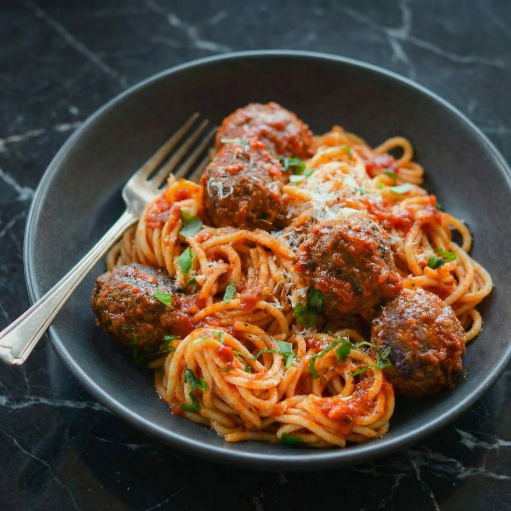 With tender meatballs, rich tomato sauce, and perfectly twirled spaghetti, this Spaghetti and Meatballs recipe delivers classic comfort in every bite.